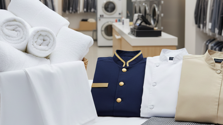 Cleaning of tablecloths, napkins, chef coats, and kitchen uniforms.