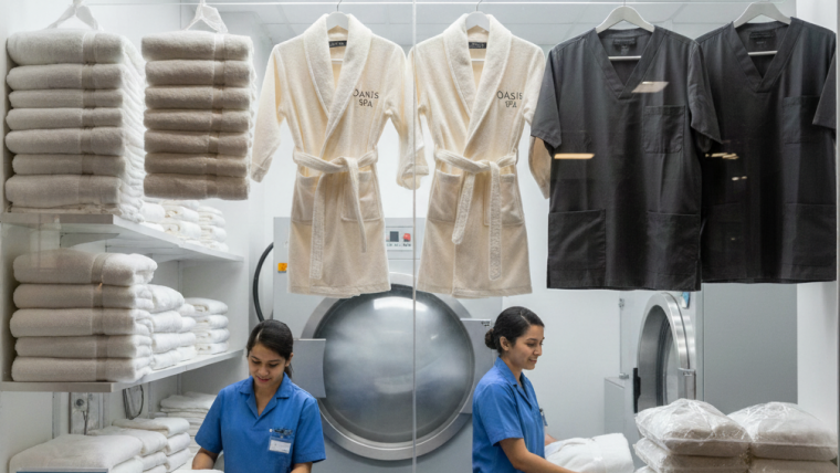 Fresh towels, robes, and uniforms cleaned and sanitized